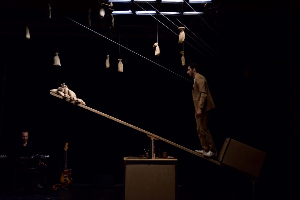Un esploratore ingenuo, che naviga in un mondo dominato da strane leggi, è alla ricerca (fisica oltre che mentale) dell’equilibrio. Sarà preda degli eventi o diventerà l’autore del suo destino? A dircelo un mix di giochi innocenti e di scherzi (letteralmente) con il fuoco. Chissà quali fili avrà intrecciato il fato per il nostro coraggioso esploratore… In un universo monocromatico e immerso tra i suoni di Raphael Raccuia, Marc Oosterhoff inventa una performance ad altissima tensione.