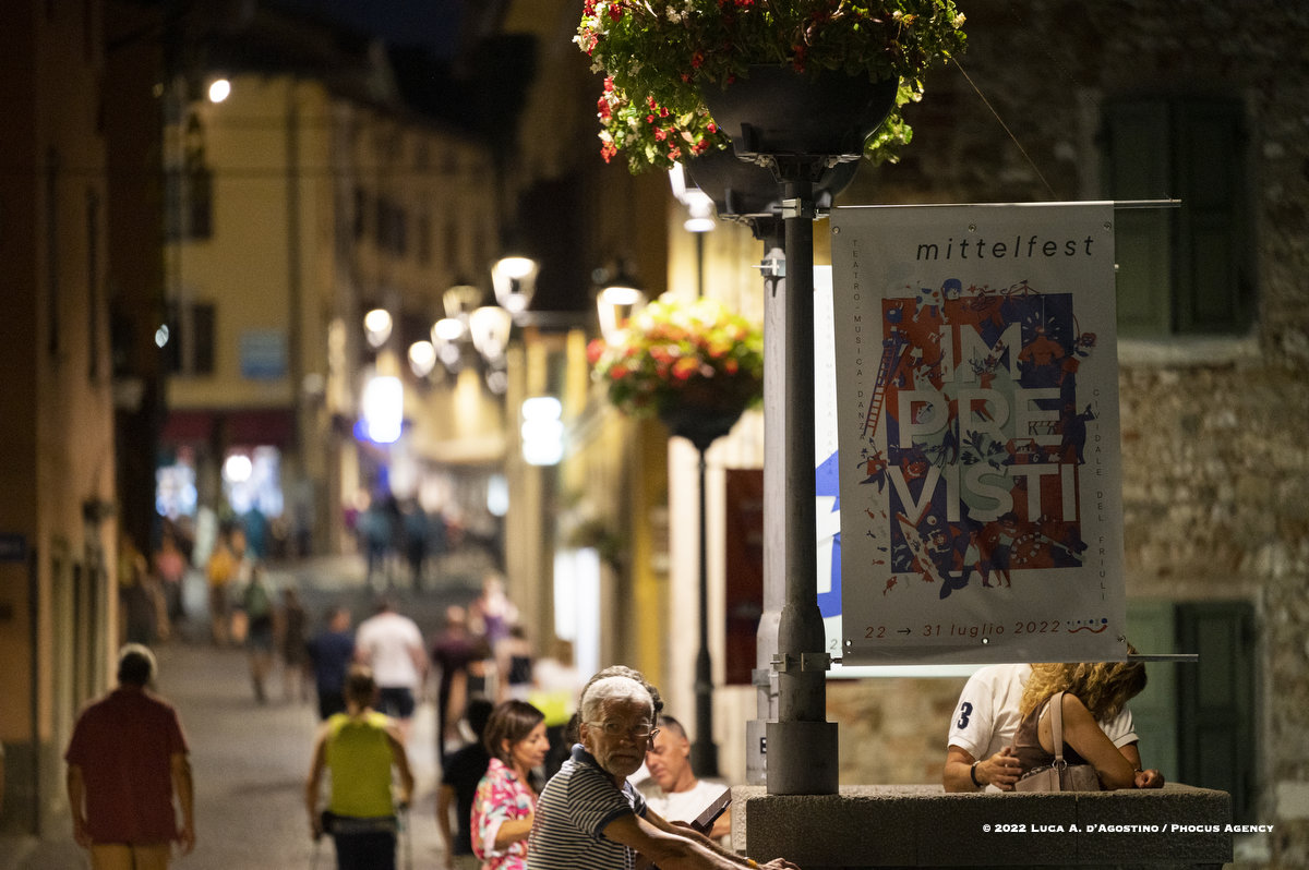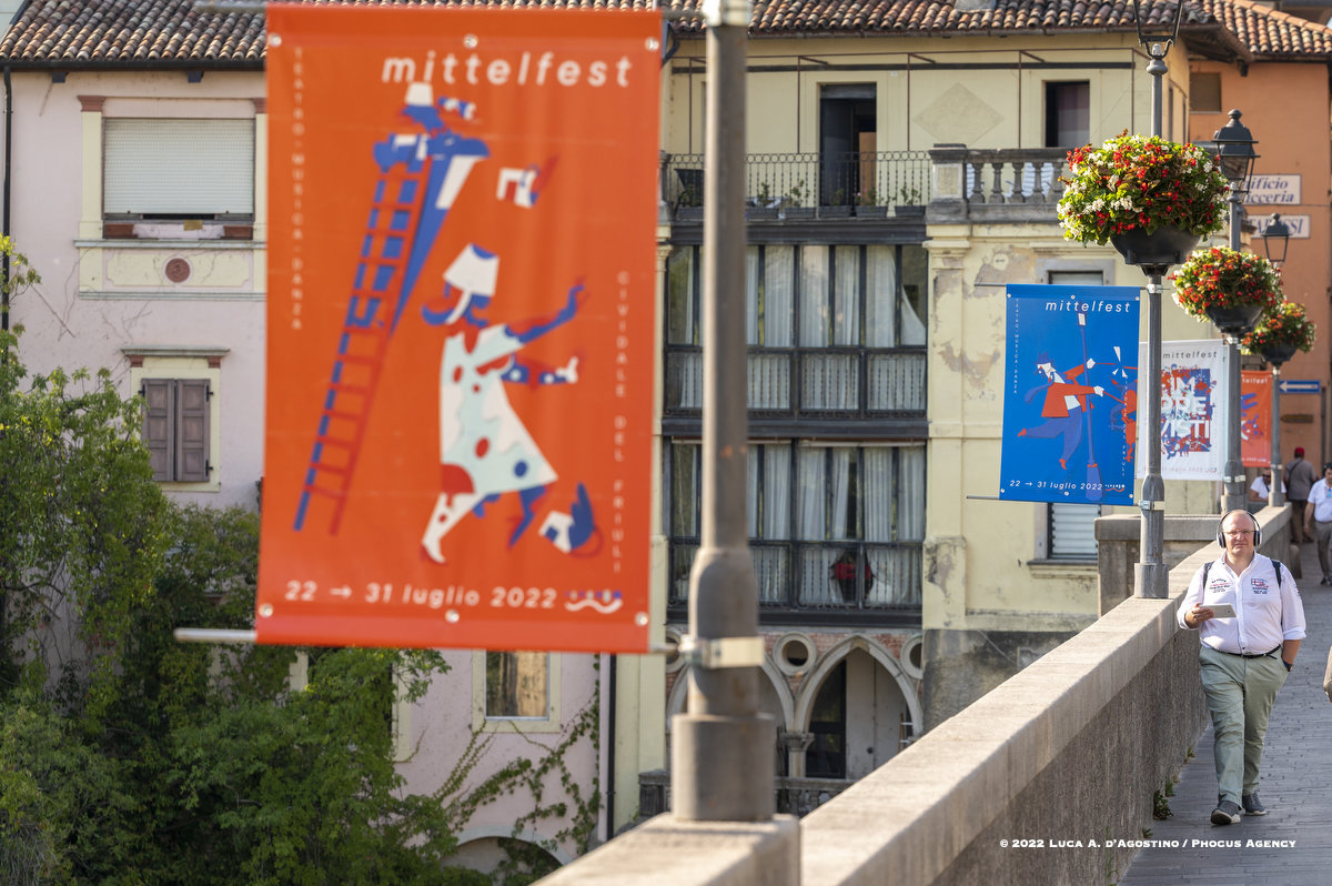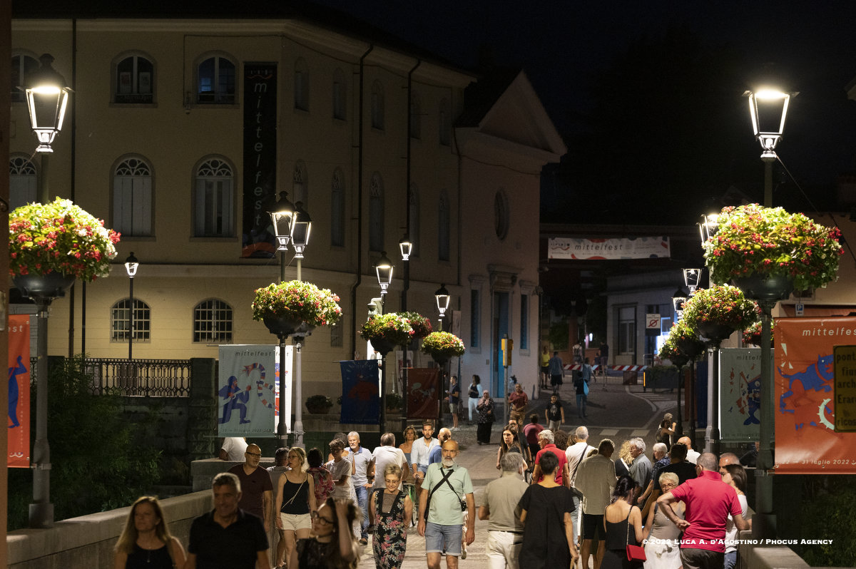 Seduto sul gretto assolato del Natisone, a lasciarsi cullare da un refolo di vento dell’est, oppure svagando per le vie e negli angoli antichi di Cividale, la spettatrice o lo spettatore di Mittelfest talvolta insegue e talvolta attende lo schiudersi di infinite sorprese. Che sia una melodia dolce o sfrenata, che sia una parola che colpisce al cuore, che sia la leggerezza di un passo di danza o il brivido del circo, beh non è dato saperlo.
