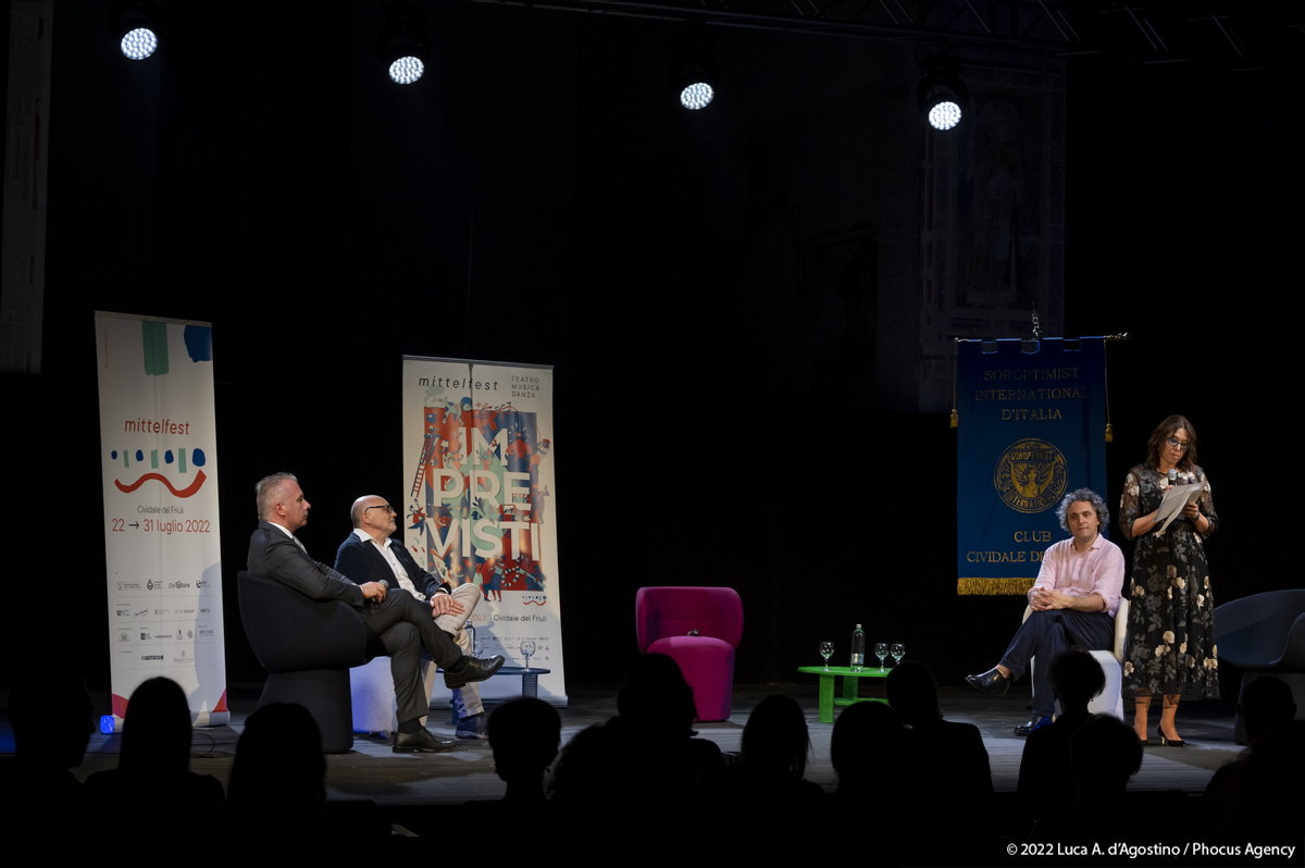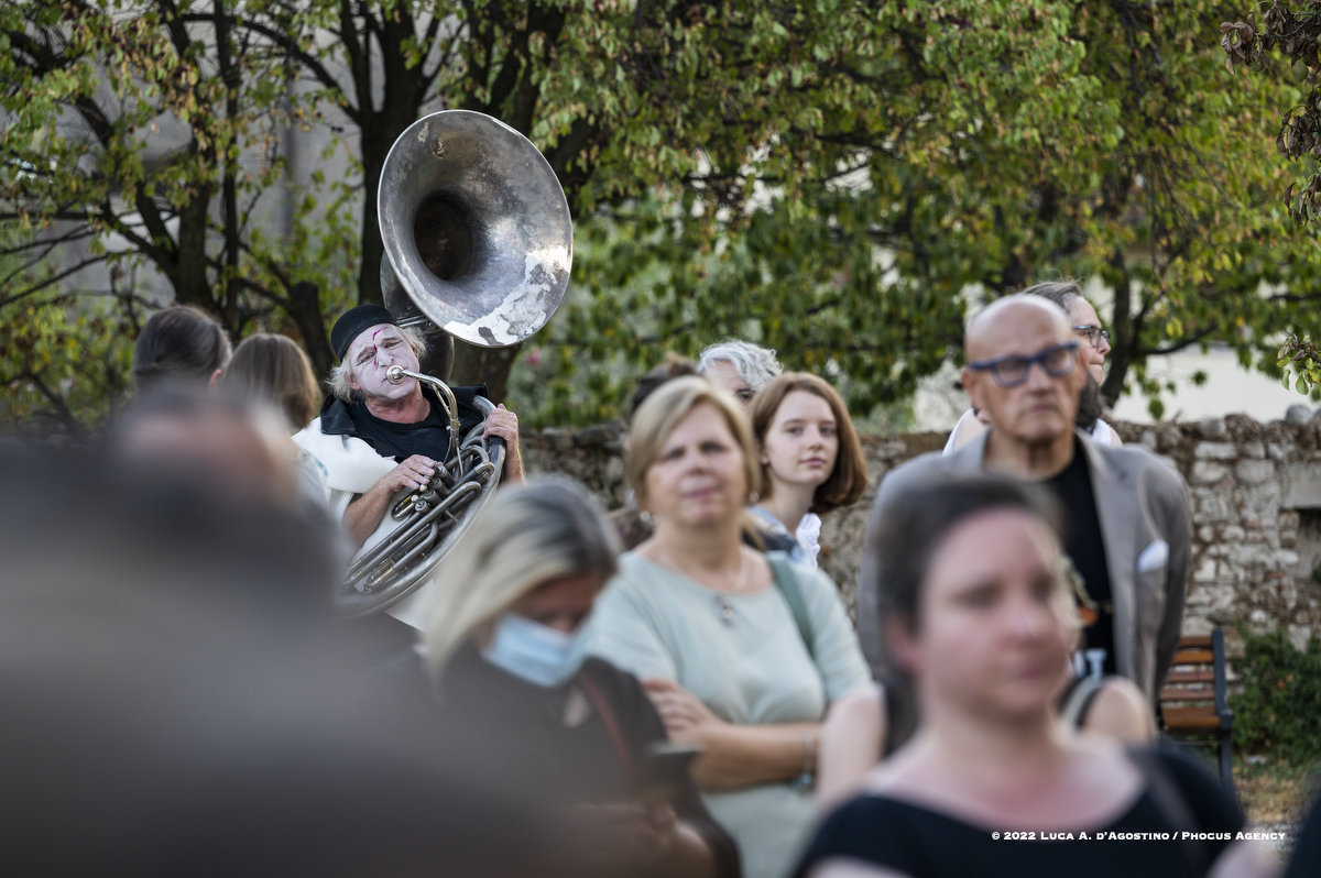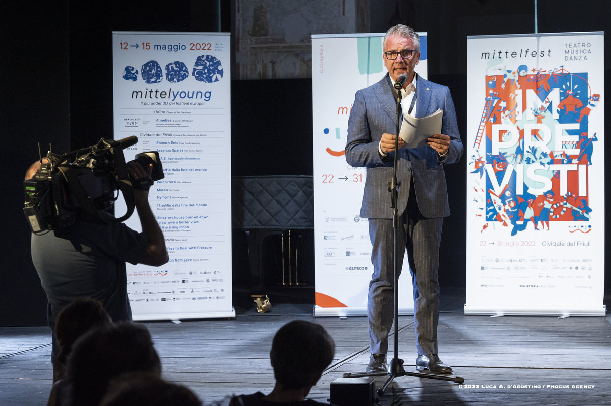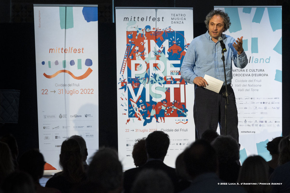 Seduto sul gretto assolato del Natisone, a lasciarsi cullare da un refolo di vento dell’est, oppure svagando per le vie e negli angoli antichi di Cividale, la spettatrice o lo spettatore di Mittelfest talvolta insegue e talvolta attende lo schiudersi di infinite sorprese. Che sia una melodia dolce o sfrenata, che sia una parola che colpisce al cuore, che sia la leggerezza di un passo di danza o il brivido del circo, beh non è dato saperlo.